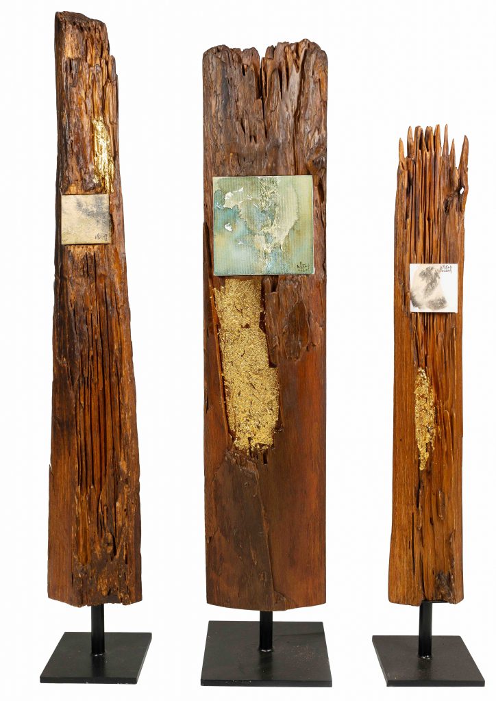 Các tranh Acrylic trong bộ GIấc mơ, Tự do, An trú kết hợp gỗ