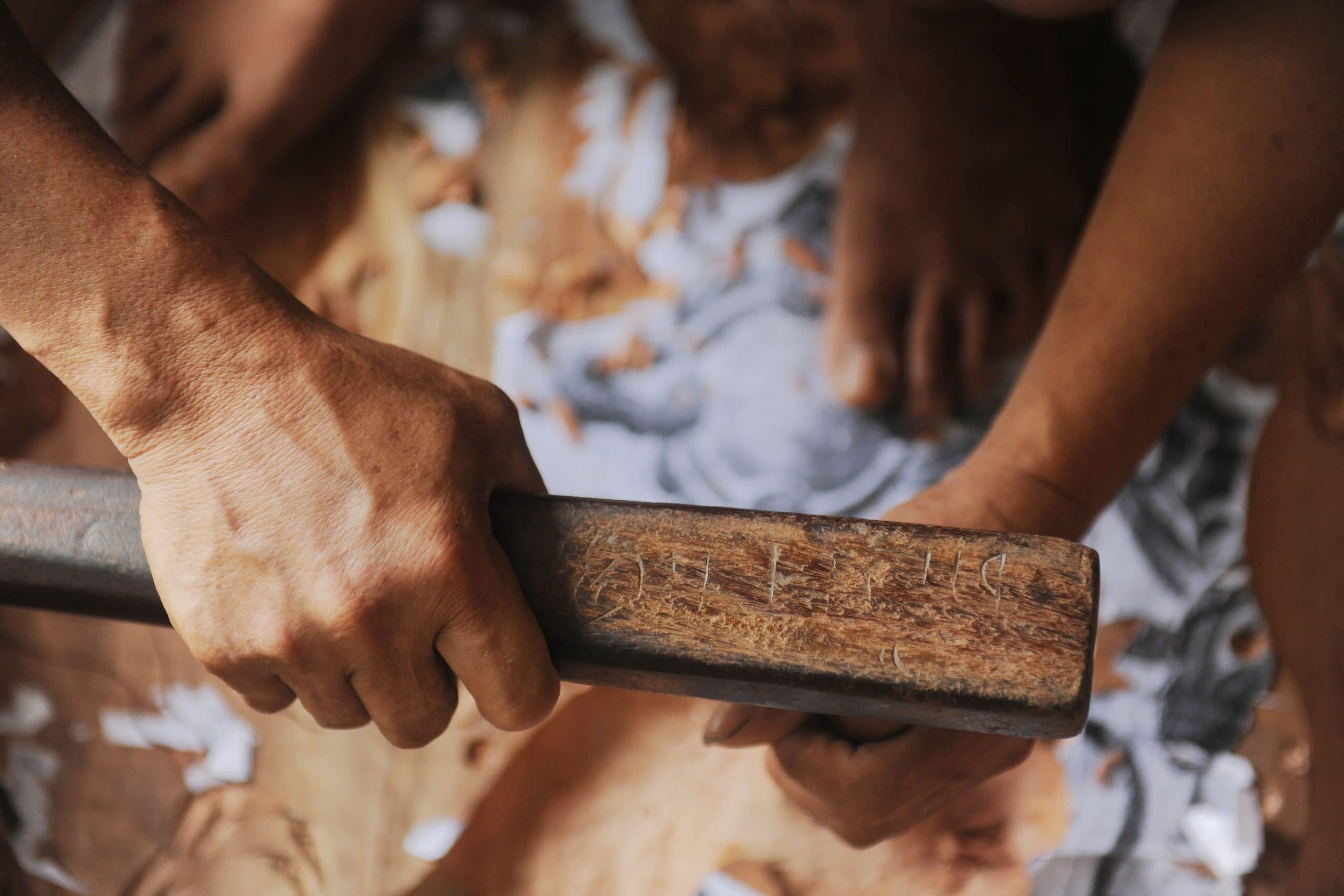 Quả thật, để làm ra một khuôn bánh Trung thu hoàn chỉnh phải trải qua nhiều công đoạn. Ban đầu là xử lý độ ẩm của gỗ, cắt phôi, bào nhẵn, kẻ mực rồi ngâm mỡ. Công đoạn này phải làm thật kỹ vì có kỹ thì sau này khuôn mới không bị dính chặt bột. Ông Bản chia sẻ thêm: “Mà gỗ làm khuôn phải là gỗ xà cừ, loại gỗ có tuổi thọ cao, ít bị ẩm mốc, để không ảnh hưởng đến chất lượng bánh sau này”. Sau khi khuôn gỗ đã lên khối thì sẽ được người thợ dung compa đo kích thước dài rộng rồi vẽ khuôn, bào khuôn, đục hoa văn… Khuôn tròn, vuông, hoa văn như mai trúc cúc sen… đến các hình thù cầu kỳ như rồng phượng, mây lá, cá, 12 con giáp, đàn lợn mẹ con… đều được làm từ chính đôi bàn tay khéo léo của người thợ với sự trợ giúp của bộ dùi đục gồm 24 chiếc.