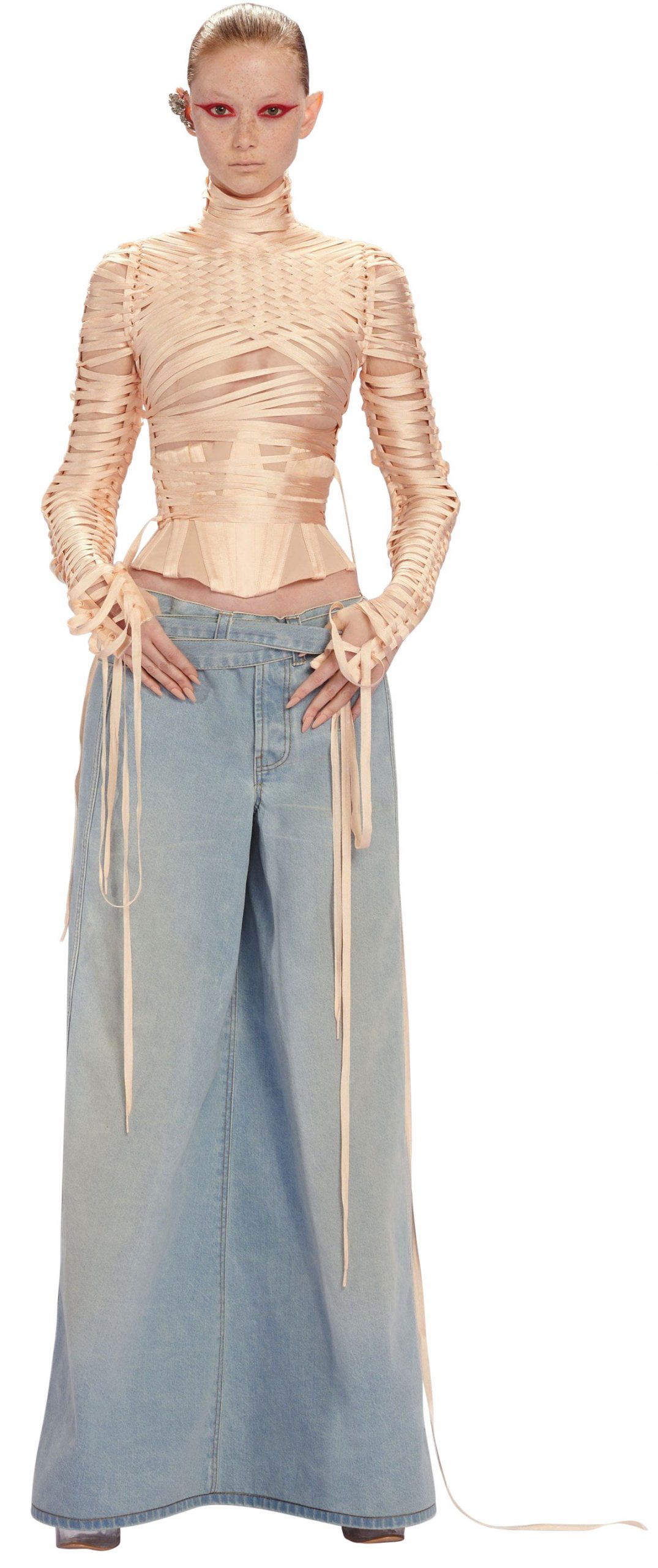 Look (bộ đồ trên sàn diễn) số 18 trong bộ sưu tập (BST) Jean Paul Gaultier Haute Couture mùa của Xuân 2022 là một chiếc corset được làm từ hàng trăm dải ruy băng mặc cùng chân váy denim dài chạm gót, tất cả đã được bán với mức giá hơn 22 tỷ đồng cho một vị khách Trung Quốc giấu tên. Điều gì sẽ xảy ra nếu Gaultier quyết định đơn giản hóa chi tiết, và khiến Look 18 trở nên dễ tiếp cận hơn với thị trường? Mặt khác, không cần tới 22 tỷ, khi nhìn vào thiết kế này, số đông đã ít nhiều có cho bản thân một ý tưởng, điều bạn không bao giờ có thể hình dung nếu nhìn vào Haute Couture của những năm 90 và thậm chí đầu những năm 2000.