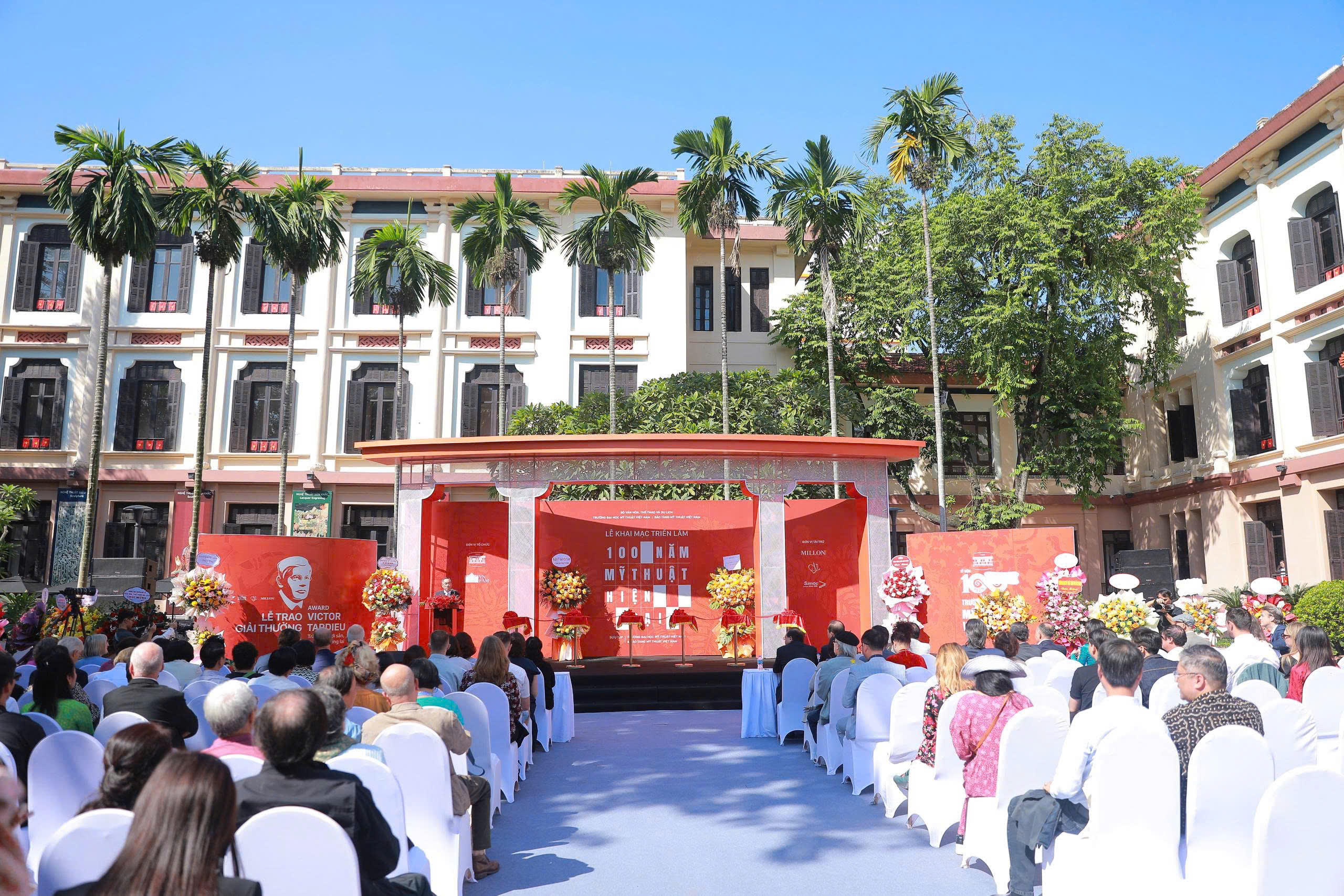 Không gian trưng bày được chia thành 6 phần, khắc họa rõ nét từng giai đoạn lịch sử: từ các tác phẩm của thầy Pháp, sinh viên Trường Mỹ thuật Đông Dương, sự chuyển đổi sang Mỹ thuật Cách mạng (Khóa Kháng chiến), đến các giai đoạn phát triển nghệ thuật theo hướng Hiện thực Xã hội Chủ nghĩa và hội nhập quốc tế sau này. Lễ khai mạc vào sáng 14/11/2025 cũng là sân khấu trao giải Giải thưởng Victor Tardieu, tôn vinh các bài sáng tác tốt nghiệp xuất sắc nhất năm 2025.