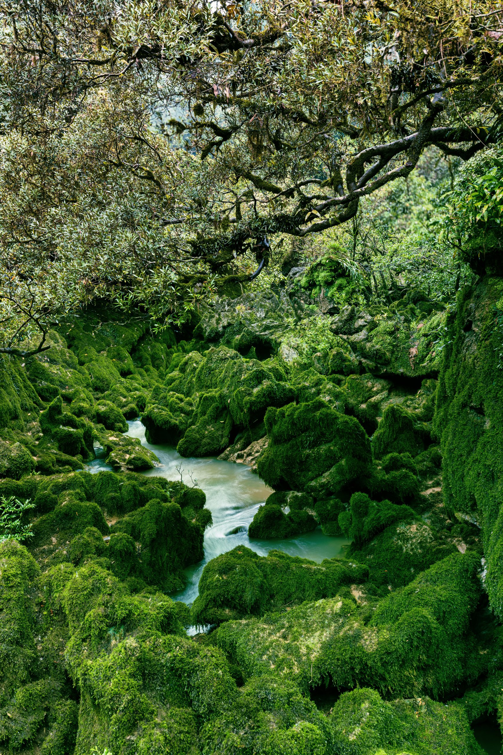 Rồi cũng đến lúc ngớt mưa và chúng tôi tiếp tục lên đường khám phá Hung Thoòng. Tôi đã vài lần chạy, leo núi, trekking dưới mưa nhưng lần đi trong cánh rừng già này khiến tôi thích thú. Đường khó đi hơn phải vượt qua một dòng suối cạn, lộ ra đám đá nhọn ướt và rất sắc phủ rêu trơn trước khi tiếp cận hang Thung. Chúng giống như bãi cọc nhọn trong trận thủy chiến trên sông Bạch Đằng vậy. Nếu lơ đãng, sơ sẩy một chút là có thể ngã điếng người.