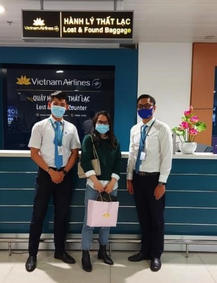 Máy bay cất cánh về Tp Hồ Chí Minh lúc 18 giờ cùng ngày với số hiệu chuyến bay VN275. Điều may mắn đã xảy ra khi tổ tiếp viên của chuyến bay này tìm thấy chiếc nhẫn trong lúc kiểm tra khoang hành khách. Tiếp viên đã khẩn trương bàn giao lại cho Quầy hành lý thất lạc (Lost & Found) ở Tân Sơn Nhất để liên hệ, trả chiếc nhẫn kim cương cho khách. Đến chiều ngày 11/1, hành khách đã đến sân bay nhận lại chiếc nhẫn.
