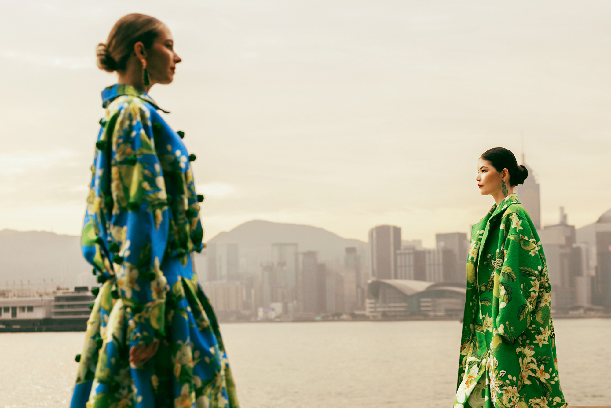 Hơi thở Hong Kong hiện diện rõ nét qua bảng màu rực rỡ và các họa tiết lấy cảm hứng từ bảng hiệu, taxi, xe buýt và nhịp sống đô thị sôi động. Những yếu tố đời thường ấy được chuyển hóa thành chi tiết thiết kế mang tính thị giác cao, tạo nên hiệu ứng chuyển động trên các thiết kế. Không chỉ dừng lại ở cảm hứng thị giác, BST trở thành cuộc đối thoại tinh tế giữa văn hóa, phong cách sống đô thị và thời trang đương đại.