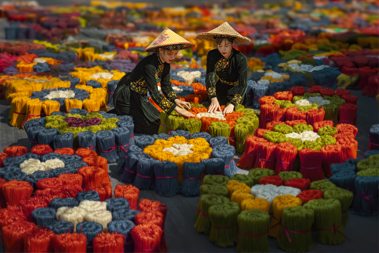 Làng bún Hồng Quang là nơi chuyên sản xuất bún khô được làm từ ngô. Điều thú vị có lẽ đến từ sắc màu của những sợi bún nên được gọi là bún ngũ sắc. Nguyên liệu chính của loại bún này là ngô tẻ giống địa phương, hạt đều, chắc để cho thành phẩm thơm và có màu vàng đẹp. Ngô sau khi phơi khô sẽ được xay nhỏ rồi ngâm qua đêm. Tiếp đó, ngô được xát mịn rồi thêm bột gạo để cho vào máy trộn, pha thêm nước, đem hỗn hợp này vào máy ép bún để ra sản phẩm.