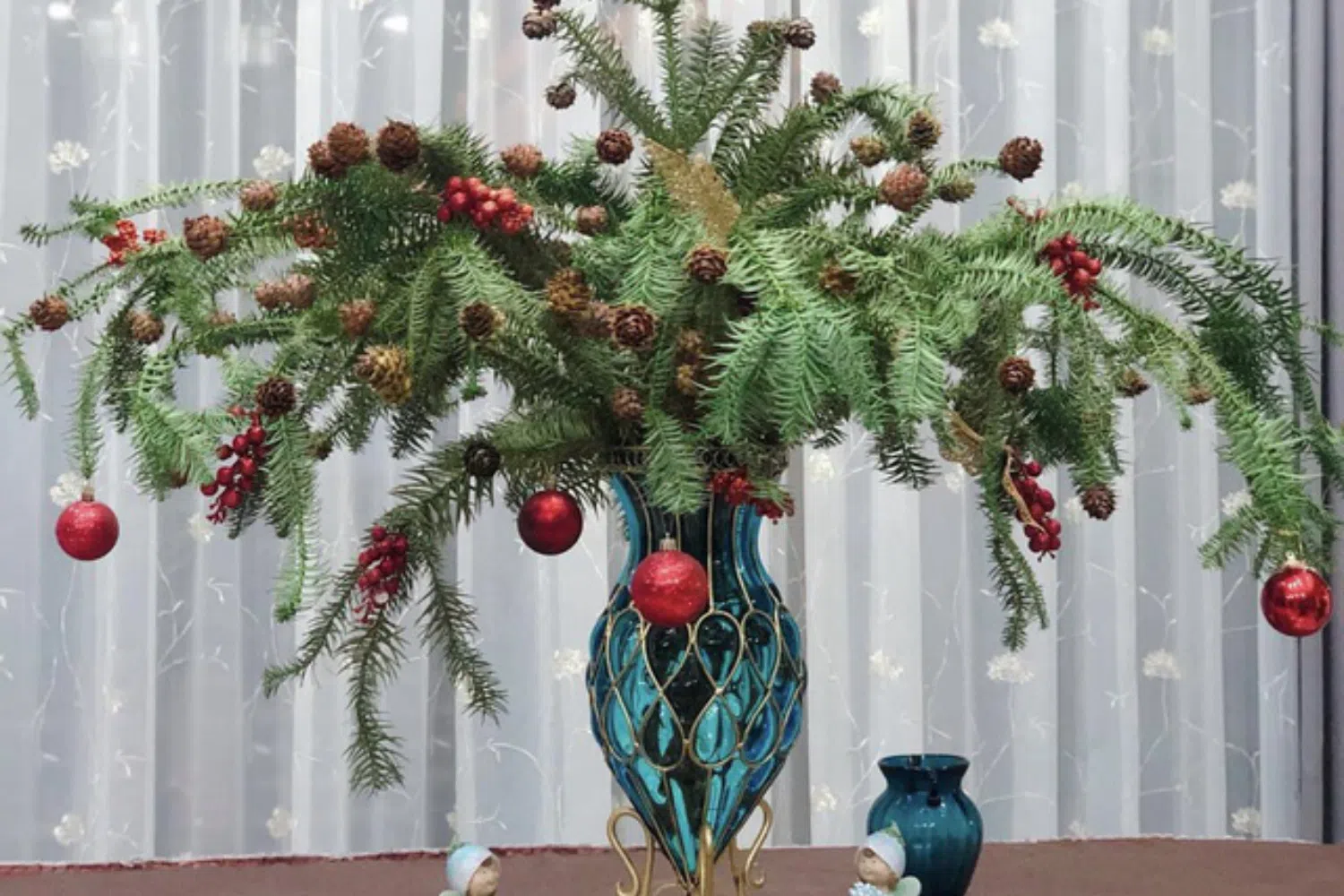 Không phải ai cũng có thời gian và không gian để dựng một cây thông lớn. Nhưng chỉ cần vài cành thông tươi đặt trong một chiếc bình gốm hoặc bình thủy tinh, bạn đã có ngay biểu tượng Giáng sinh tinh gọn.