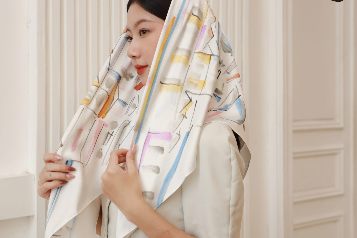 Một chiếc khăn lụa – nhỏ bé, nhẹ nhàng – nhưng có thể làm nên cả một phong cách. Nó có thể được thắt quanh cổ, buộc hờ trên tóc, vắt qua quai túi, hay thậm chí trở thành chiếc thắt lưng ngẫu hứng.