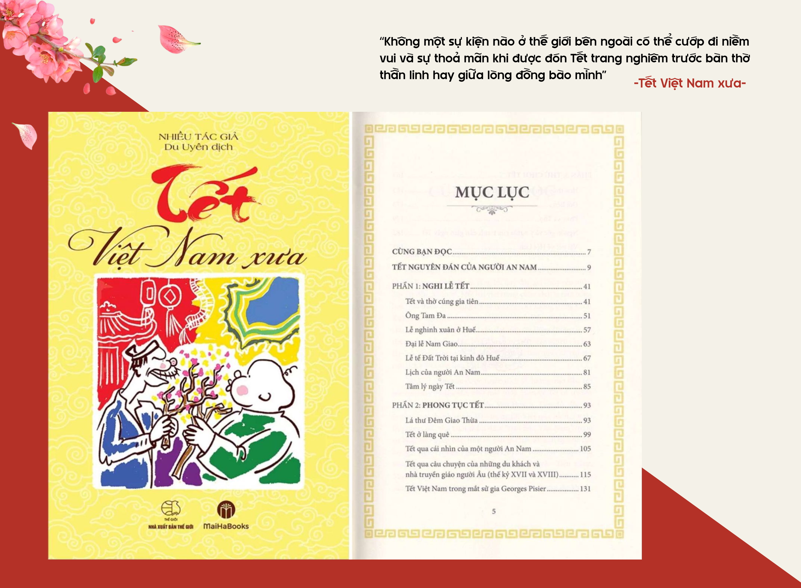 Từ nền tảng đó, hành trình Tết Việt dần hiện ra qua những trang viết uyên bác nhưng gần gũi của nhiều học giả Việt Nam và phương Tây như Nguyễn Văn Vĩnh, Phạm Quỳnh, Trần Văn Giáp, Paul Boudet, Jean Marquet, Georges Pisier, Nguyễn Tiến Lãng, Mạnh Quỳnh,… Mỗi bài viết là một lát cắt về nghi lễ, phong tục, thú chơi ngày Tết – từ cách đón giao thừa, cúng tổ tiên, đến những sinh hoạt văn hóa mang đậm tâm hồn Việt Nam.