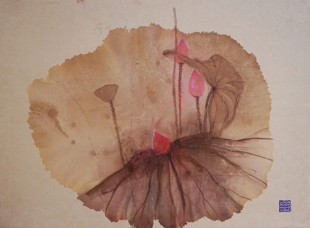 Hơn 35 tác phẩm trưng bày đến từ ba họa sĩ đều mang tính cá nhân sâu sắc, thiền định hoặc siêu thực. Với Hương Color, cô sử dụng màu nước trên lụa và giấy dó để tạo nên những bức tranh không chỉ để nhìn, mà để đắm chìm trong ánh sáng, tâm thức và cảm xúc.
