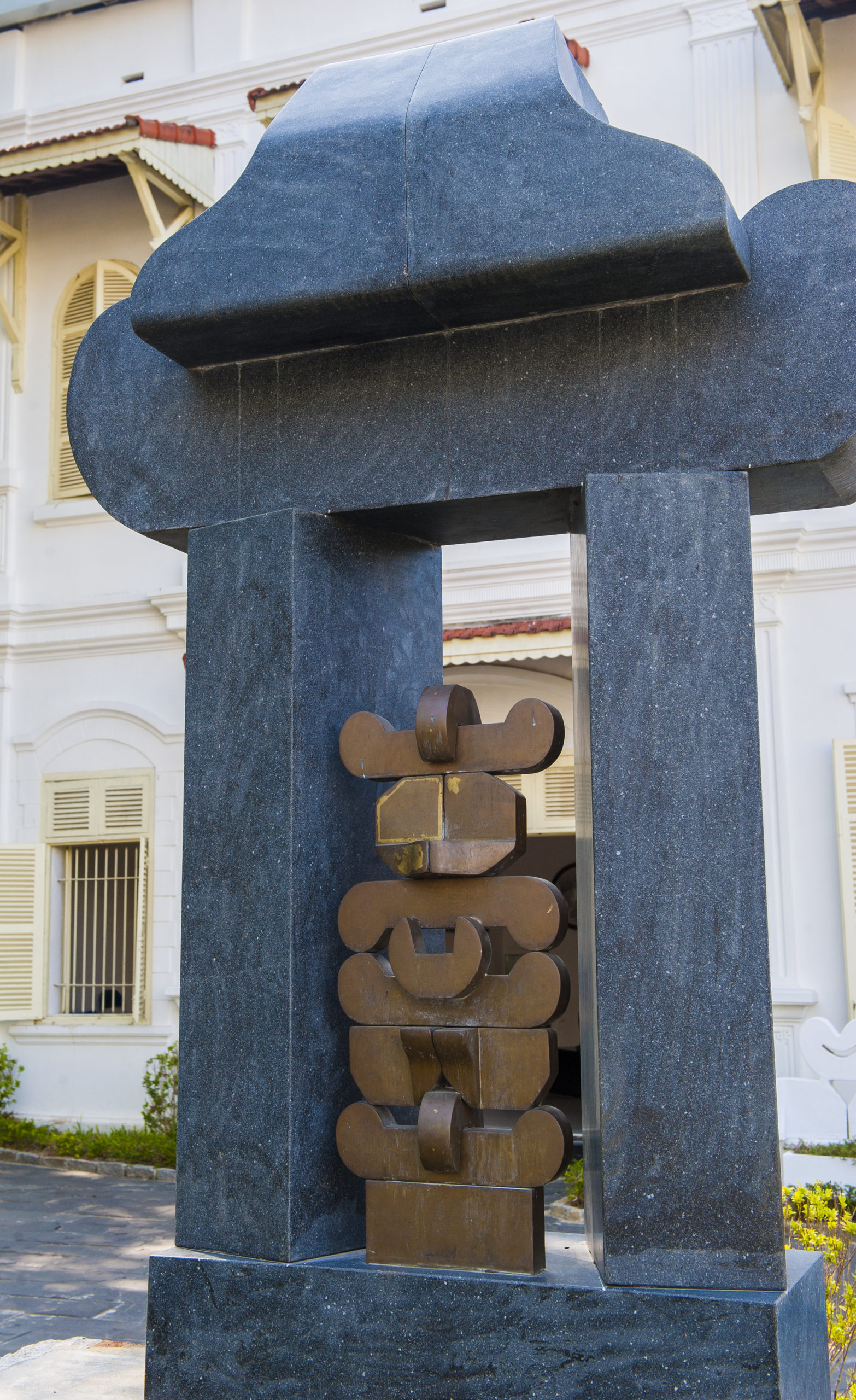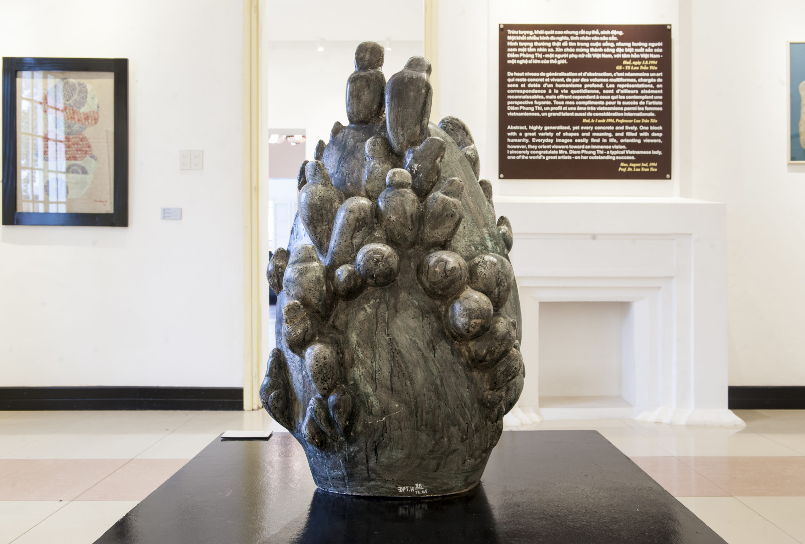 Điềm Phùng Thị đến với nghệ thuật điêu khắc như một duyên mệnh. Tác phẩm của bà mang hơi thở, tiếng nói riêng cực kỳ đặc biệt và đơn nhất, không thể lẫn lộn với bất cứ nghệ sĩ nào khác trên thế giới. Tượng của Điềm Phùng Thị là sự biến hóa linh hoạt của 7 module hình học. Từ hình người chấp tay, thêm vào mấy module thành một ông quan, xoay qua xoay lại thành người phụ nữ, lật ngược, lật xuôi thành bông hoa… Với 7 mẫu tự độc đáo đó, Điềm Phùng Thị đã lắp ghép, đã biến hóa thành muôn vàn hình tượng. Thế giới nghệ thuật của bà đậm đặc phong vị và triết lý phương Đông. Năm 1994, ở tuổi 81, bà hiến tặng toàn bộ tài sản nghệ thuật của mình cho Huế với 175 tác phẩm.
