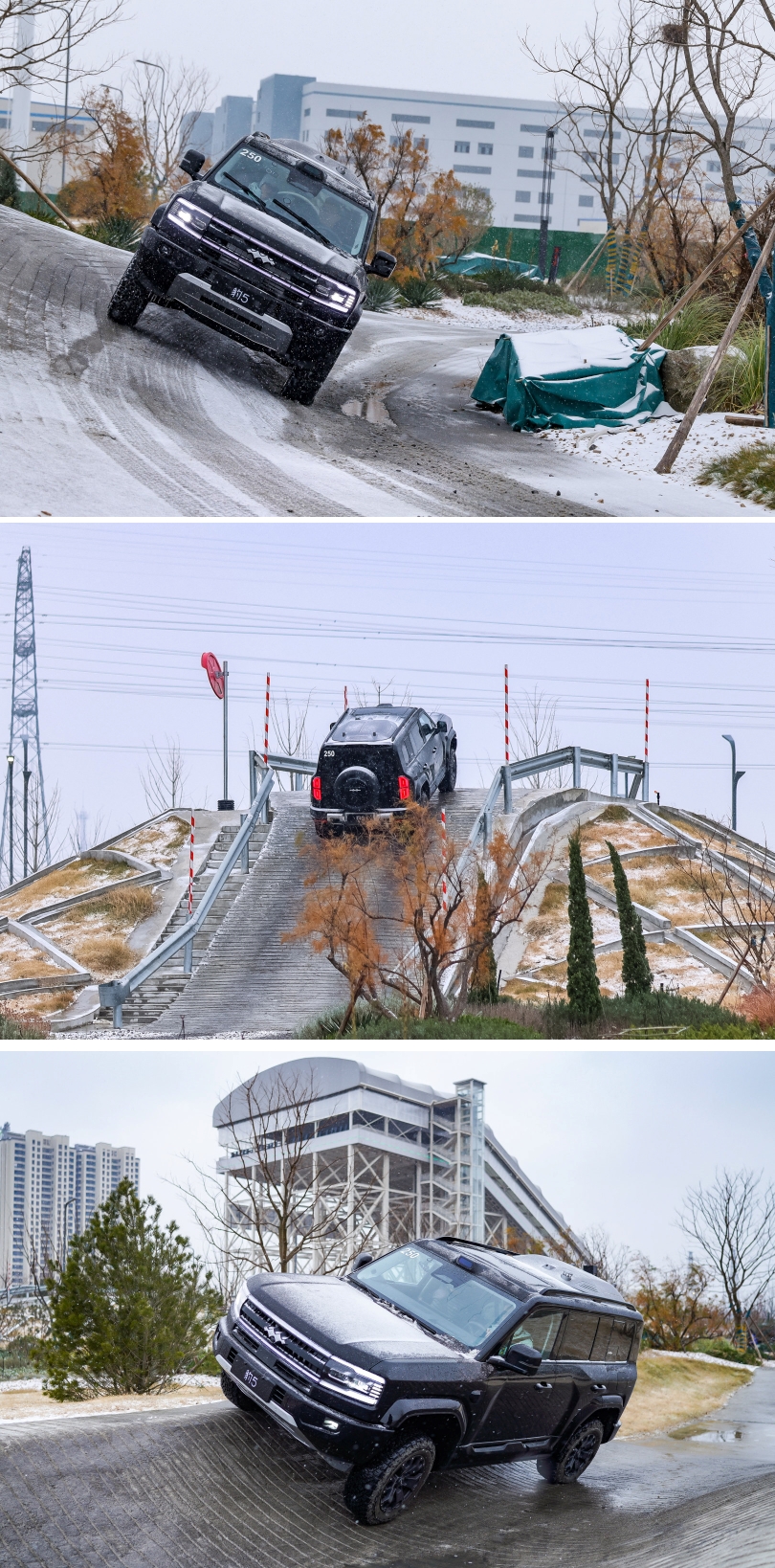Một thử thách khác diễn ra trước sự trầm trồ của người xem: màn leo dốc cát cao 29,6 m với độ dốc 28 độ – công trình đã được chứng nhận Guinness là dốc cát trong nhà lớn nhất dành cho thử xe. Trên khối cát được tạo hình từ 6.200 tấn vật liệu có cấu trúc tương tự sa mạc Alxa, các dòng xe như FANGCHENGBAO, YANGWANG hay các mẫu SUV DM-i/DM-p lần lượt chinh phục địa hình. Ở đây, khả năng leo dốc, kiểm soát mô-men xoắn và duy trì độ bám đường được thể hiện một cách chậm rãi, kiên nhẫn, không cần đến sự phô trương.