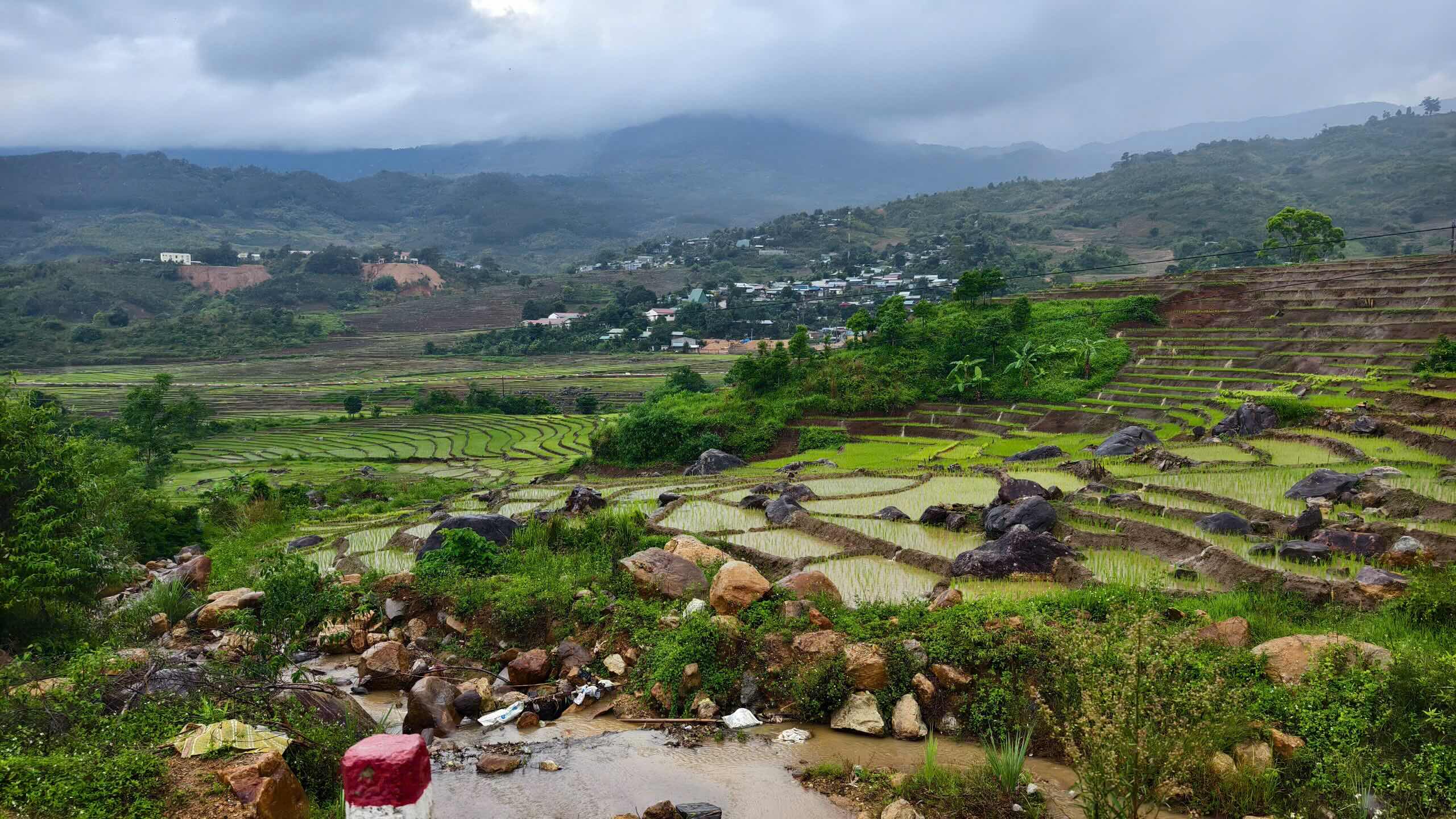 Quãng đường lên núi Ngọc Linh mang tới những thách thức đầy phấn khích – sức hấp dẫn đặc trưng trên những cung đường núi của Tây Nguyên. Những con đường đất đỏ trơn trượt ngoằn ngoèo; những con dốc hiểm trở giữa đại ngàn hùng vĩ, tất cả đều yêu cầu một sự cẩn trọng tuyệt đối và tập trung tuyệt đối của lữ khách. Và khi vượt qua những hiểm trở ấy, phần thưởng là cảnh quan nguyên sơ như một bức tranh thủy mặc hai bên đường: ruộng bậc thang loang loáng nước, rừng già phủ bóng, từng dòng suối róc rách vang vọng giữa không gian trong lành. Mùi rừng – mùi của đất ẩm, nhựa cây và hoa dại – ùa vào lồng ngực thanh sạch đến lạ, như một liều thuốc bổ phổi từ thiên nhiên.