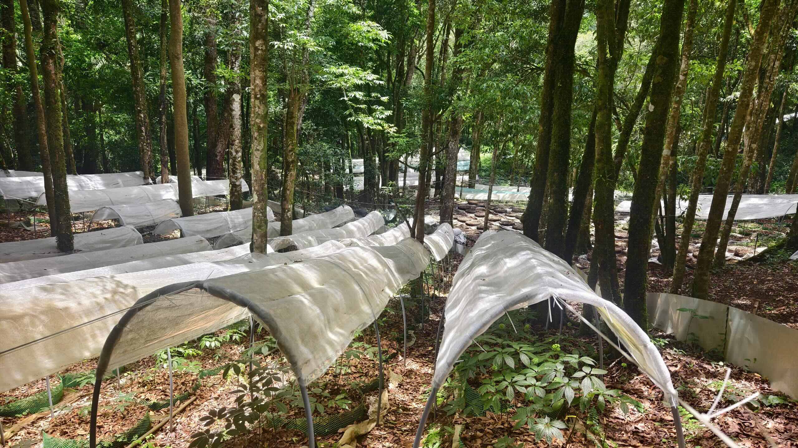 Khu vực trồng sâm nằm ở độ cao gần 2000m so với mực nước biển. Để tới được đây, chúng tôi phải men theo các đường mòn nhỏ, băng qua các con suối, các bậc đá ẩm ướt và rễ cây chằng chịt. Mỗi bước chân là một nhịp chúng tôi cảm nhận rõ hơn về rừng thiêng và những bí ẩn mà đại ngàn lưu giữ. Và rồi, đáp lại sự trông ngóng của chúng tôi là những luống sâm xanh thẫm, khiêm nhường ẩn mình dưới lớp tán rừng già. Vườn sâm được quy hoạch khoa học: Cây 1-2 năm được che chắn kỹ, cây 3-4 năm bắt đầu ra hoa, cây trên 5 năm chuẩn bị đến kỳ thu hoạch. Bên trong nhiều lớp hàng rào thép gai và những người giữ vườn bảo vệ nghiêm ngặt là những luống sâm phủ nilon trắng, vừa đảm bảo ánh sáng quang hợp, vừa tránh mưa xối từ rừng.