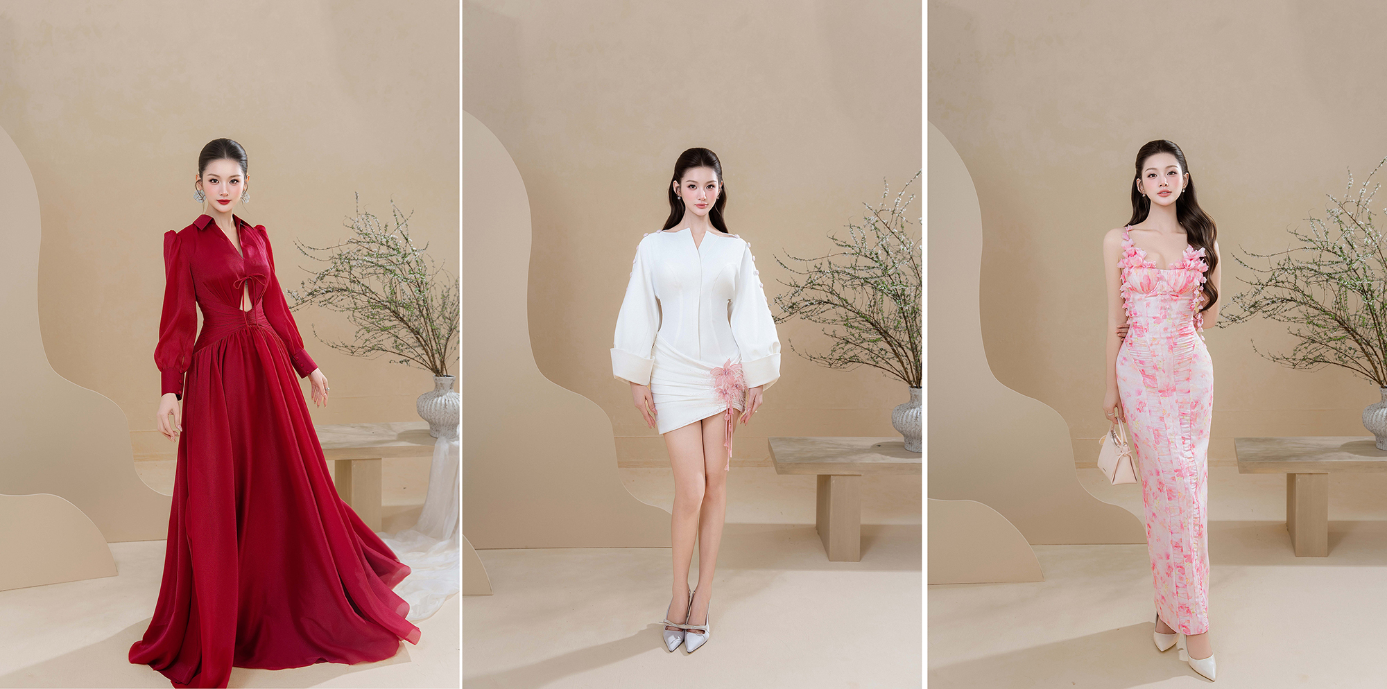 Bảng màu chủ đạo gồm trắng, kem, đỏ trầm và hồng, mang hơi thở lễ nghi và hoài cổ nhưng vẫn giữ được tinh thần đương đại. Thông qua Vân Xuân, Do Long gửi gắm hình ảnh một mùa Tết dịu dàng, sâu lắng và bền vững – nơi thời trang không chỉ là trang phục, mà còn là cảm xúc, ký ức và tâm thế để con người bước vào năm mới với sự an yên và hy vọng.