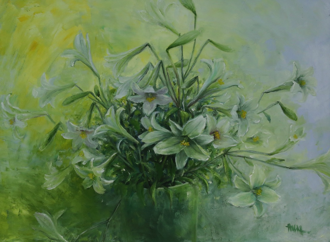 Mọi sắc thái của hoa, dù được cắm trong bình hay vừa được cắt từ vườn nhà, có đôi khi là những đóa hoa dại bên vệ đường, chúng rung rinh trong gió dưới ánh nắng bảng lảng của buổi sớm mai lẫn chiều tà, tự do bung nở hay chỉ giản dị như đang ở độ úa tàn đều có sức lay động nội tâm hai nữ nghệ sĩ này.
