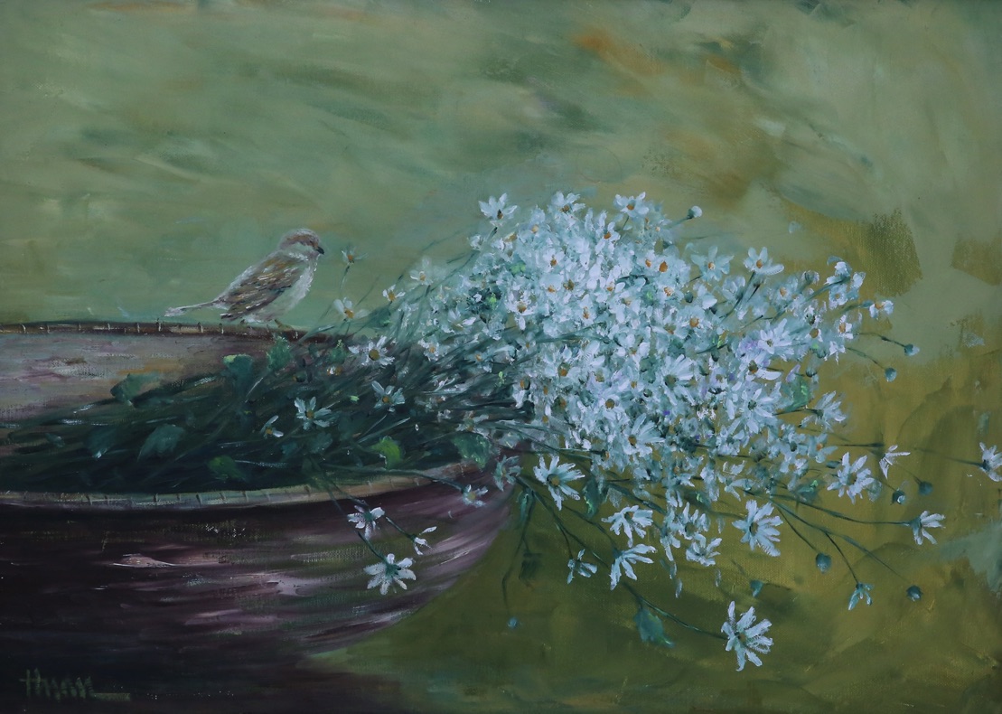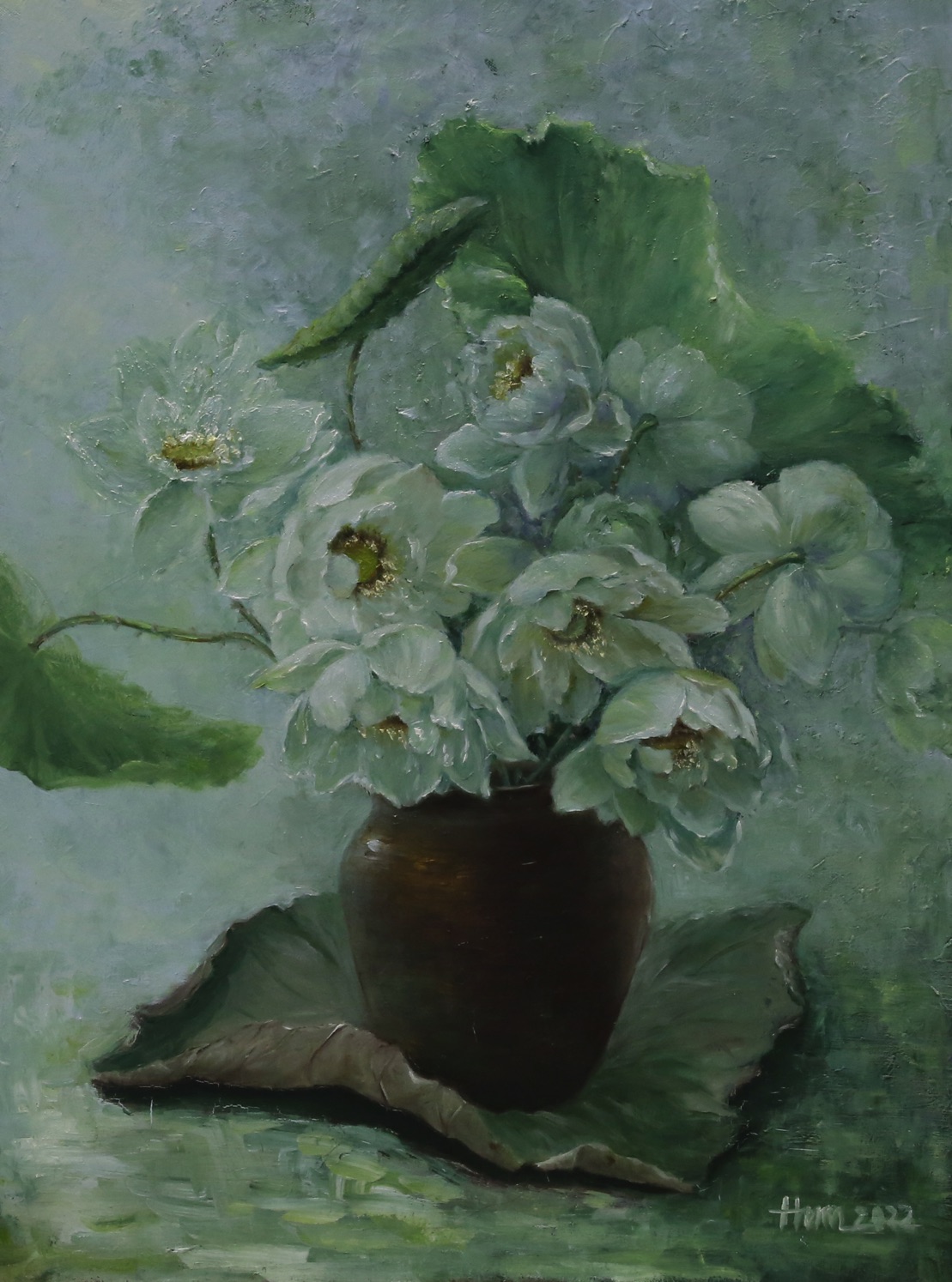 Lặng nhìn các tác phẩm của 2 họa sĩ, ta thấy vượt lên trên vẻ mong manh của hoa là nét trầm mặc, an yên, tự do và nồng nàn đến từ cuộc sống bình dị đời thường.