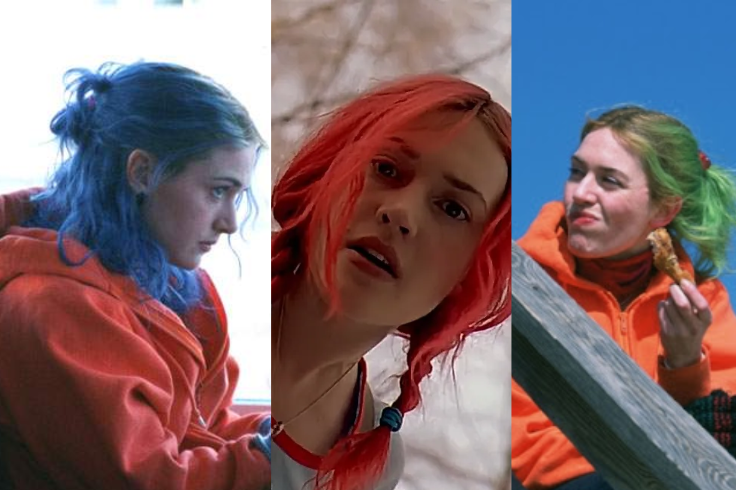 Mái tóc của Clementine không chỉ là chi tiết tạo hình. Nó phản ánh từng giai đoạn cảm xúc. Xanh dương là lúc lạnh lẽo và mất mát. Đỏ cam là thời điểm yêu đương mãnh liệt. Xanh lá là khởi đầu mới.