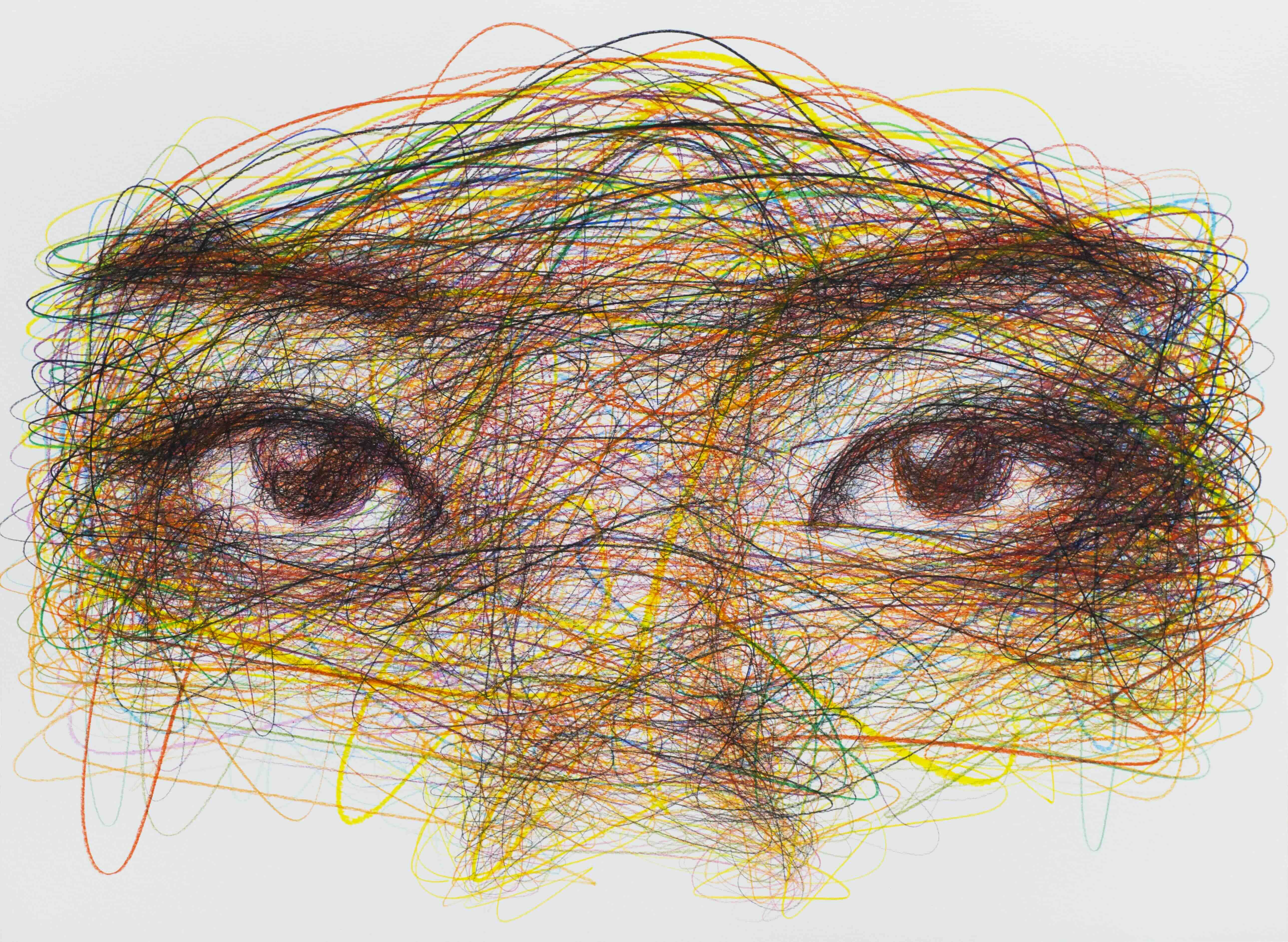 Với anh, đó là chuyển động trong những hành trình của đời người. Nhìn vào ấn tượng đầu tiên là đôi mắt và ánh nhìn, tiếp đó người xem thấy rất nhiều nét vẽ xổ dọc, chéo, chạy ngang. Đó là đường đời của anh, của mọi người, của chúng ta, đi từ bóng tối ra ánh sáng.