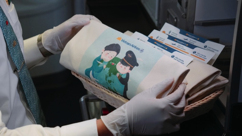 Từ năm 2019, Vietnam Airlines đã giảm hơn 60 triệu túi nylon mỗi năm nhờ ngưng sử dụng túi nylon bọc ngoài nhiều vật tư, vật phẩm trên máy bay.
