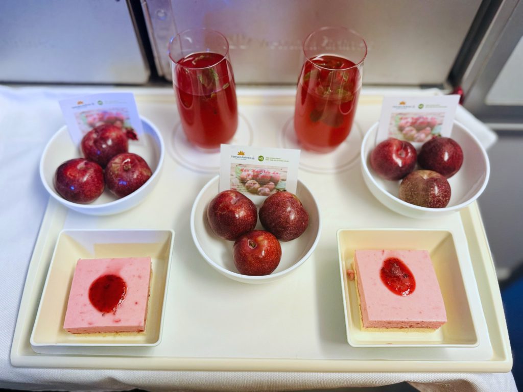 Theo đó, các chuyến bay nội địa từ Hà Nội đi TP.HCM, Cần Thơ, Phú Quốc, các chuyến bay quốc tế từ Hà Nội đi Châu Âu, Úc, Nhật Bản, Hàn Quốc sẽ được phục vụ mận hậu tươi kèm muối ô mai trên khoang Thương gia, bánh mousse mận đối với khoang Phổ thông và Phổ thông đặc biệt. Ngoài ra toàn bộ khách hàng khoang Thương gia trên các đường bay nội địa và quốc tế khác sẽ được phục vụ đồ uống chào mừng (welcome drink) là trà mận.