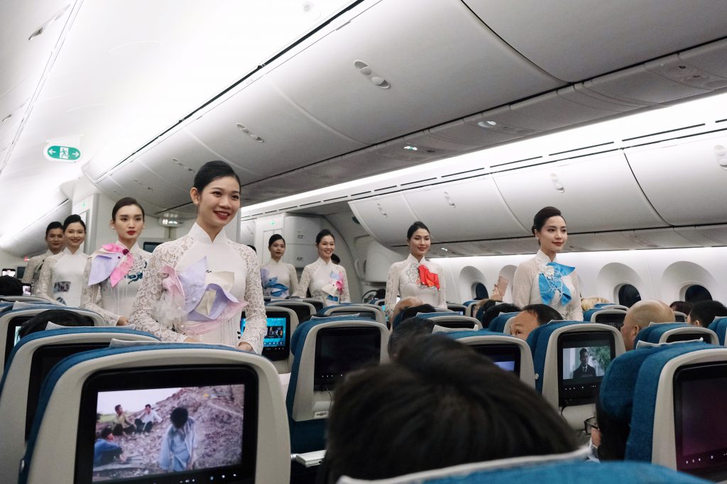 Cũng trên các chuyến bay này, hành khách được thưởng thức những giai điệu du dương từ phần biểu diễn violin và guitar do chính các tiếp viên của Vietnam Airlines.
