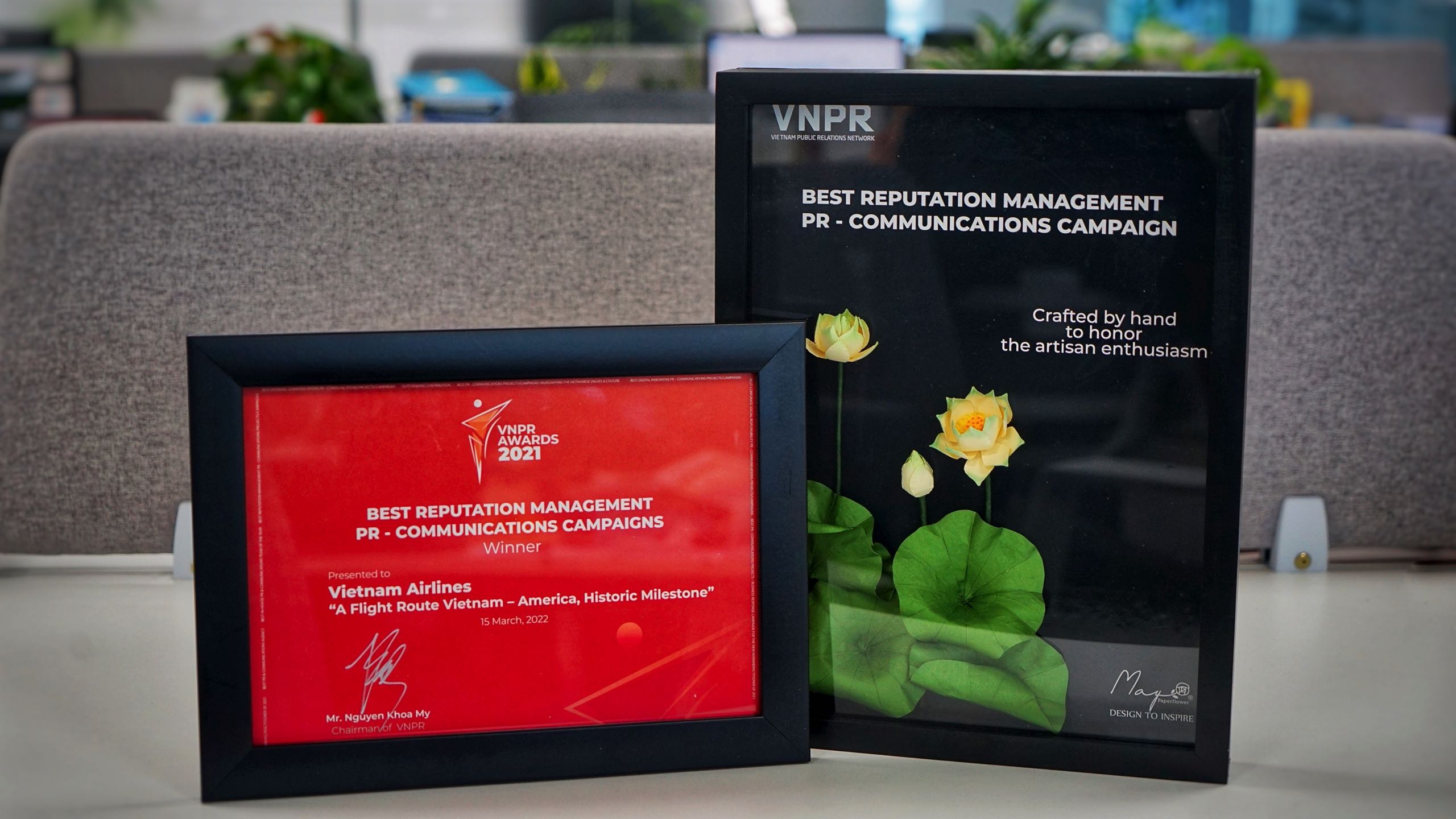 Tại lễ trao giải VNPR Awards 2021 diễn ra tại TP. Hồ Chí Minh ngày 15/3/2022, Vietnam Airlines được vinh danh ở hạng mục giải thưởng “Chiến dịch Quan hệ công chúng và Truyền thông xuất sắc năm 2021 về Quản trị thương hiệu” cho sự kiện truyền thông đường bay Mỹ.