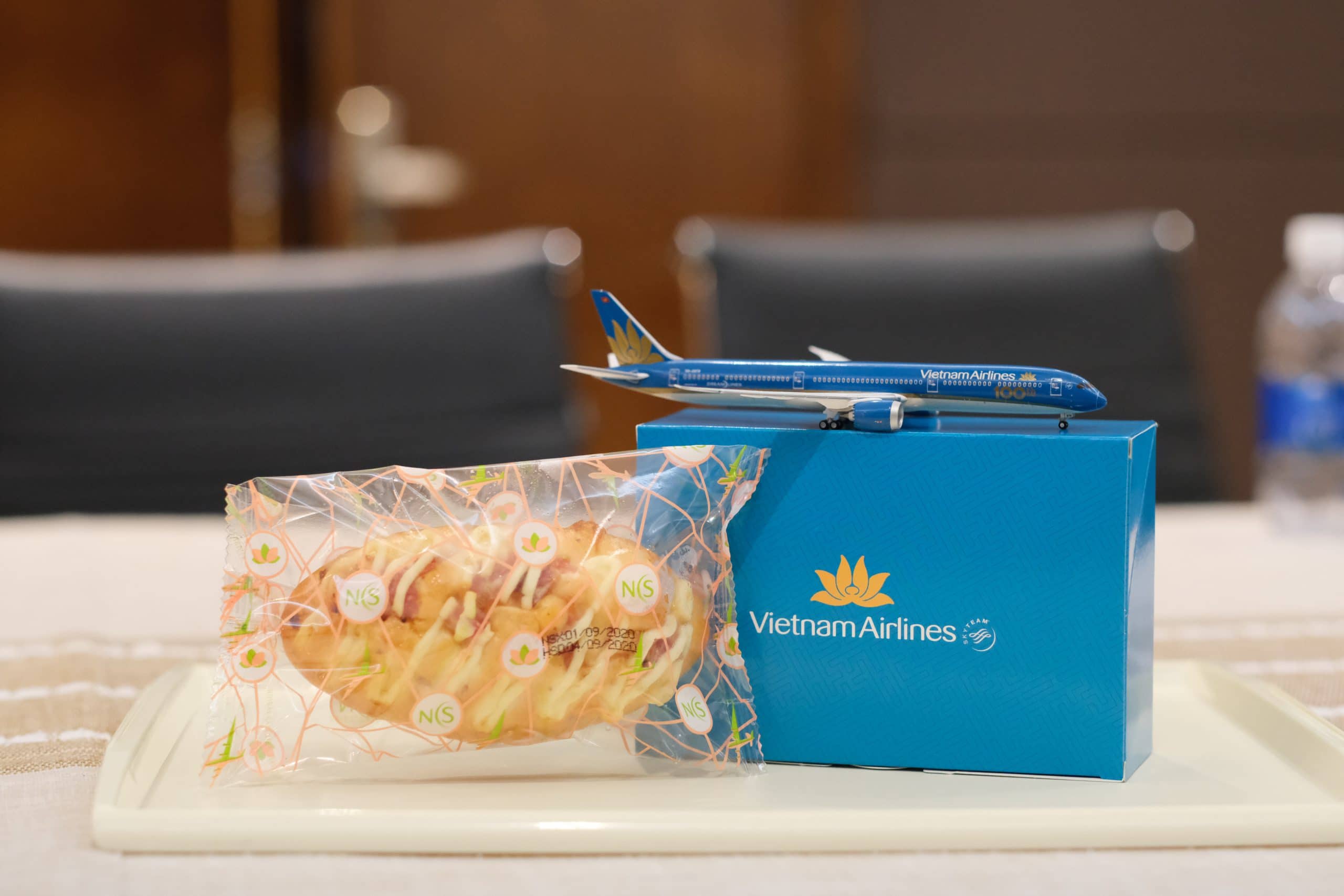 Theo đó, Vietnam Airlines giới thiệu thực đơn 12 loại bánh tươi đa dạng thể loại, từ vị mặn như bánh mì jambon, xúc xích, ba chỉ hun khói, thịt nguội, chà bông, gà rau răm, gà xé cho đến vị ngọt như bánh dừa sốt kem, bánh kem cuộn, bánh bông lan các hương vị bơ, chuối, dừa. Các loại bánh đều được sản xuất bởi công ty CP Suất ăn hàng không Nội Bài (NCS) và công ty TNHH MTV suất ăn Việt Nam (VACS) – các đơn vị thành viên của Vietnam Airlines, cung cấp dịch vụ cho Vietnam Airlines và nhiều hãng hàng không 4, 5 sao quốc tế như ANA, Singapore Airlines, Cathay Pacific, Air France…
