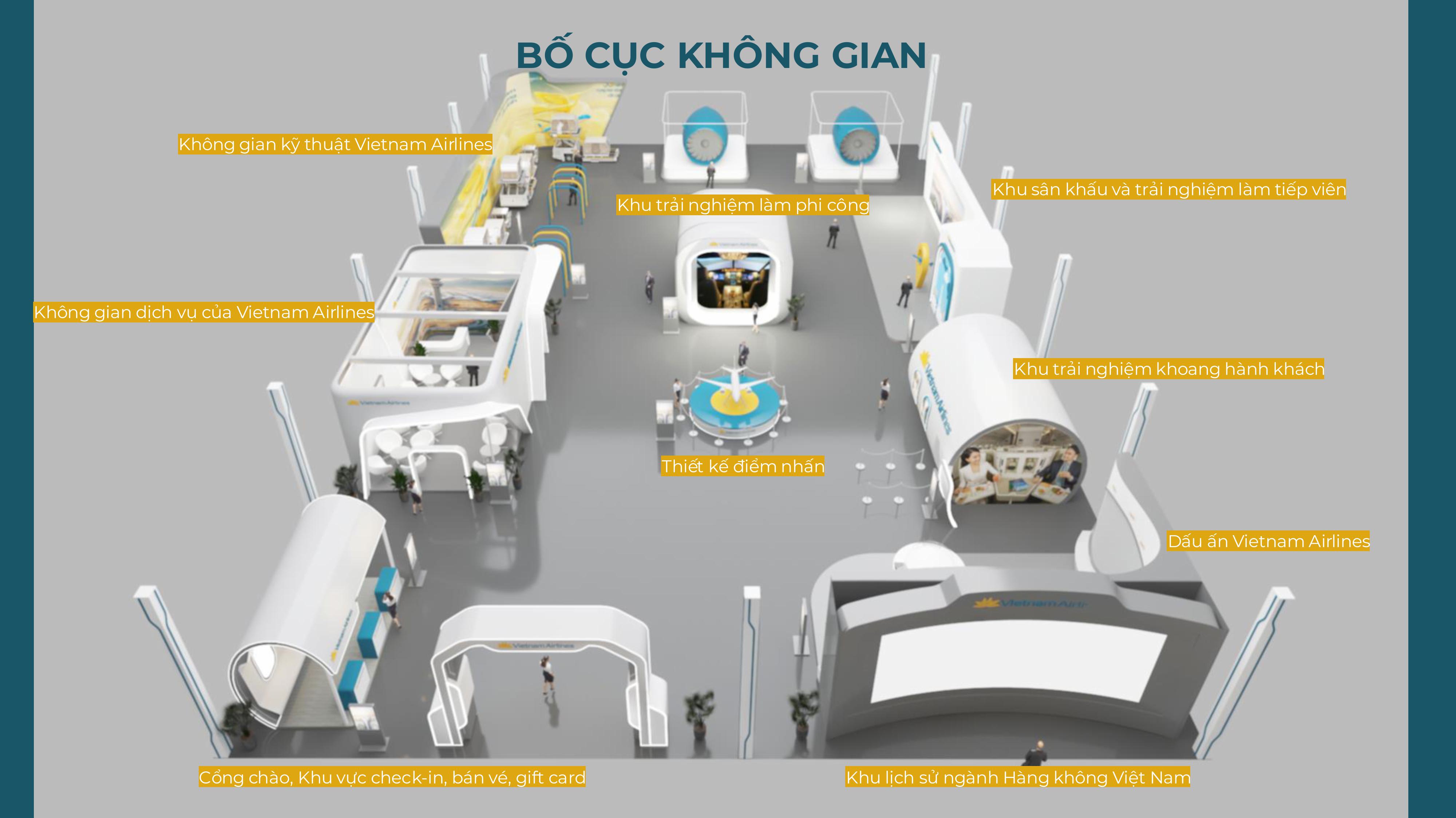 Tại khu vực của mình, Vietnam Airlines tái hiện chặng đường phát triển từ những ngày đầu thành lập, vượt qua khó khăn để khẳng định vị thế Hãng hàng không quốc gia, đến quá trình mở rộng mạng bay toàn cầu, hiện đại hóa đội tàu bay, tiên phong trong chuyển đổi số, thúc đẩy phát triển xanh gắn liền với mục tiêu phát triển bền vững.