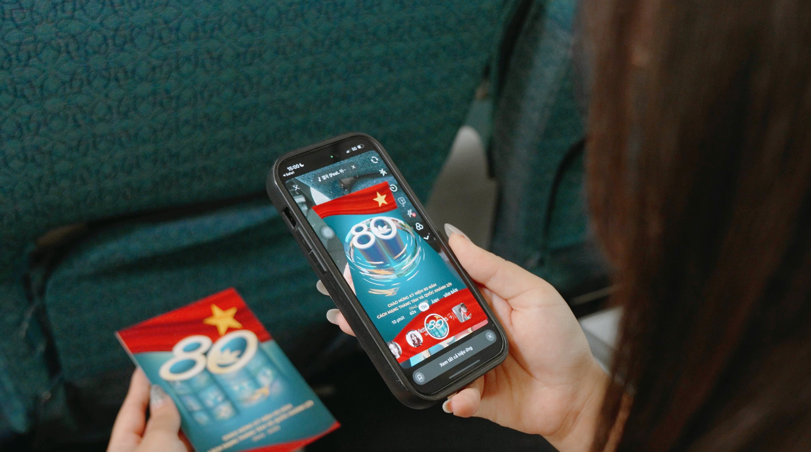 Trên chuyến bay, không gian được khoác lên sắc màu lễ hội, khơi gợi niềm tự hào về ngày Tuyên ngôn Độc lập 2/9/1945. Hành khách sẽ được trải nghiệm những chi tiết độc đáo như thẻ lên tàu phiên bản giới hạn, món ăn được thiết kế đặc biệt phiên bản Quốc khánh, giai điệu “Đường chúng ta đi” vang lên khi máy bay lăn bánh. Từng chi tiết nhỏ đều được chăm chút để mang lại sự bất ngờ, biến chuyến bay thành một không gian kỷ niệm sống động ngay trên bầu trời.