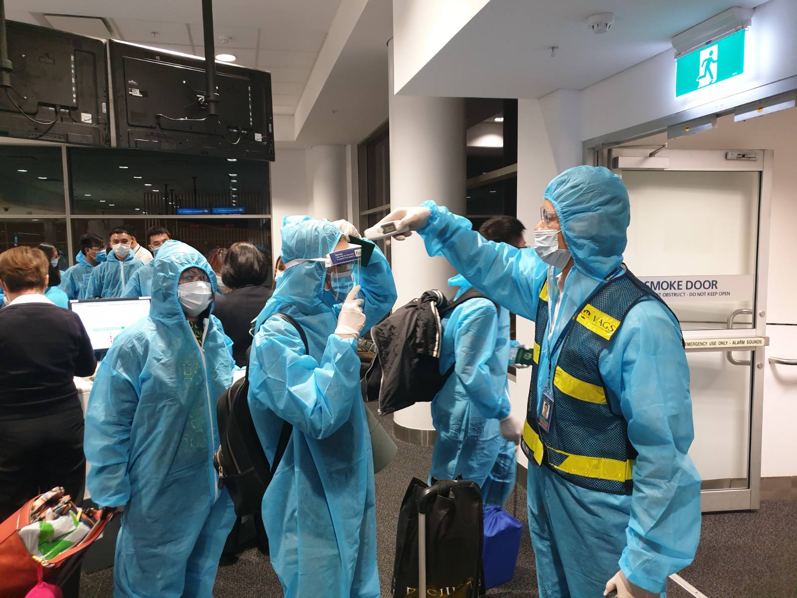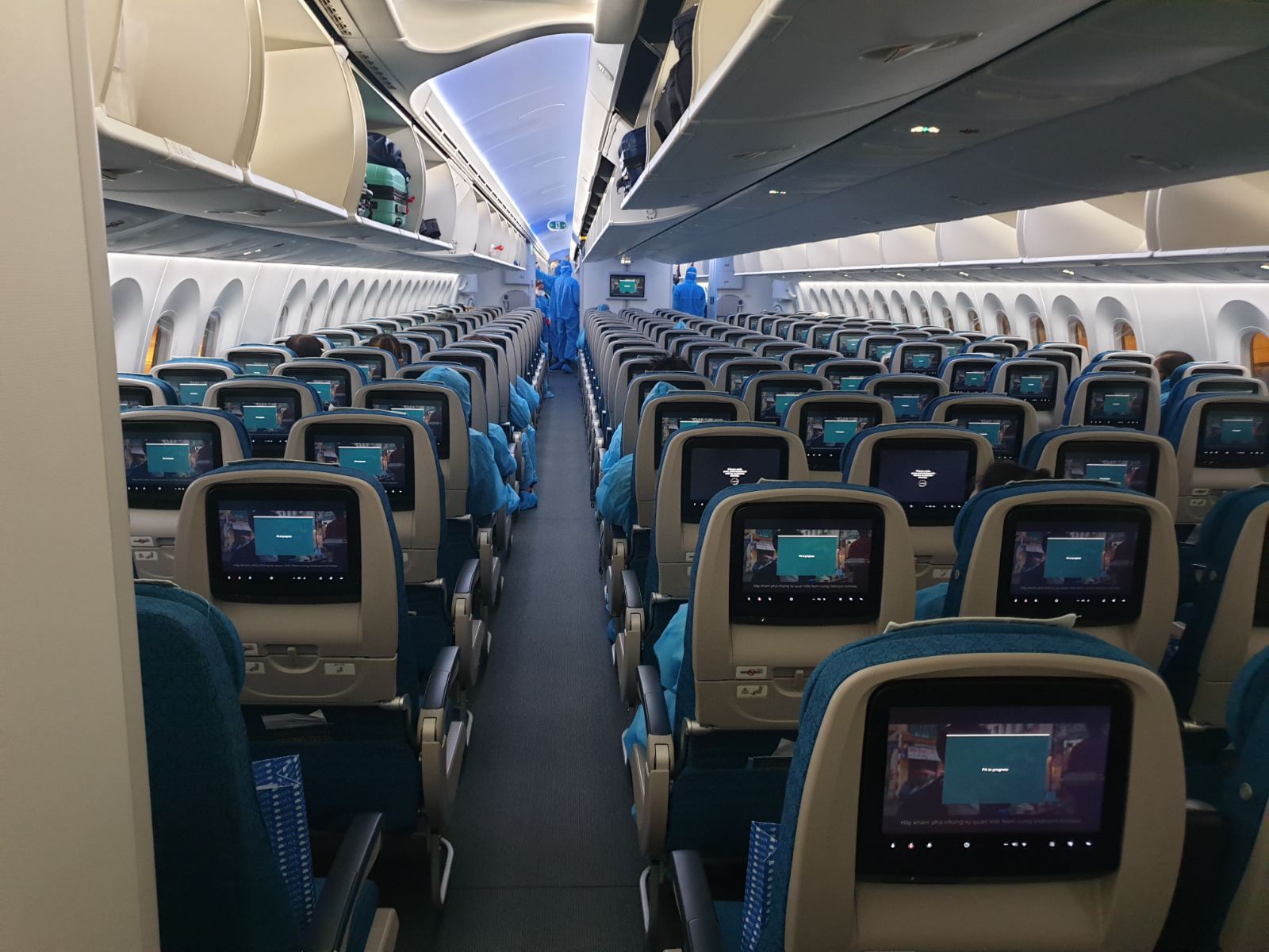 Sau khi hạ cánh tại Tp. Hồ Chí Minh, hành khách được kiểm tra sức khỏe, tổ chức cách ly tập trung theo quy định. Máy bay được y tế phun khử trùng bằng dung dịch diệt khuẩn chuyên dụng để ngăn ngừa hoàn toàn khả năng lây nhiễm dịch bệnh.