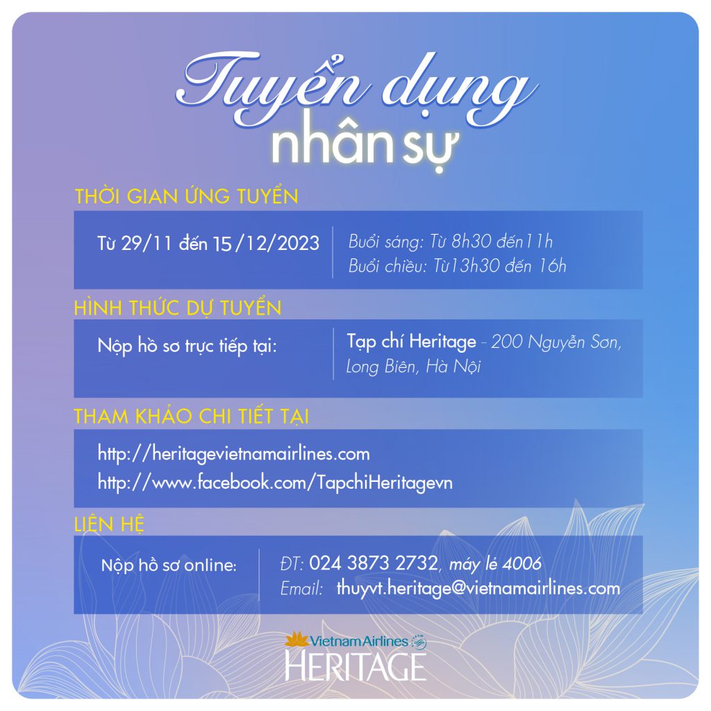 Tiểu ban xét tuyển dụng lao động năm 2023 của Tạp chí Heritage – Tổng công ty Hàng không Việt Nam (Vietnam Airlines) thông báo: