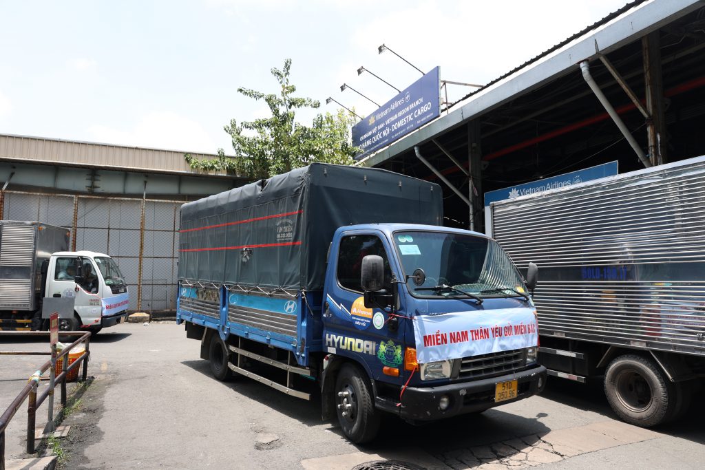 Hàng hóa cứu trợ được chuyển đến Vietnam Airlines thông qua các đơn vị, tổ chức như Văn phòng Trung ương Đảng T78, Cục An ninh đối ngoại A01, Hội chữ thập đỏ TPHCM, UB Mặt trận Tổ quốc Việt Nam…