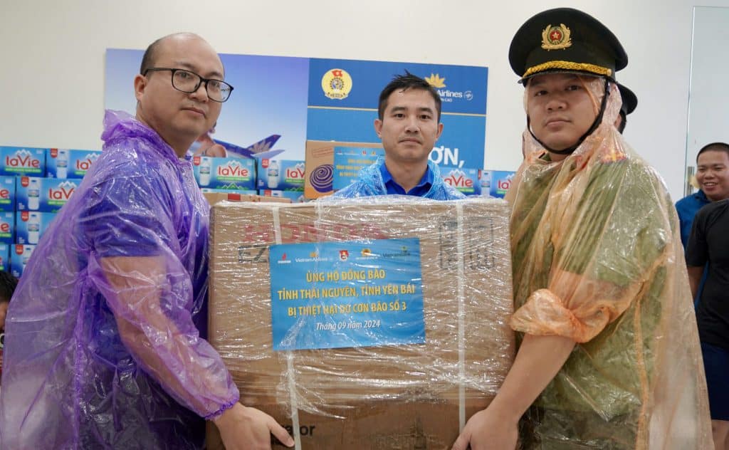 Bên cạnh đó, sau khi thông qua Uỷ ban Trung ương Mặt trận Tổ quốc Việt Nam để có những hỗ trợ bước đầu thì ngày 11/9 vừa qua, Đoàn Thanh niên Vietnam Airlines đã phối hợp với Đoàn Thanh niên Bộ Công An, Tập đoàn Dầu khí Quốc gia Việt Nam và Ngân hàng Vietcombank tổ chức hoạt động ý nghĩa, mang theo tấm lòng và sự sẻ chia đến với bà con vùng lũ Thái Nguyên, Yên Bái. Tổng giá trị hỗ trợ lên đến gần 500 triệu đồng.