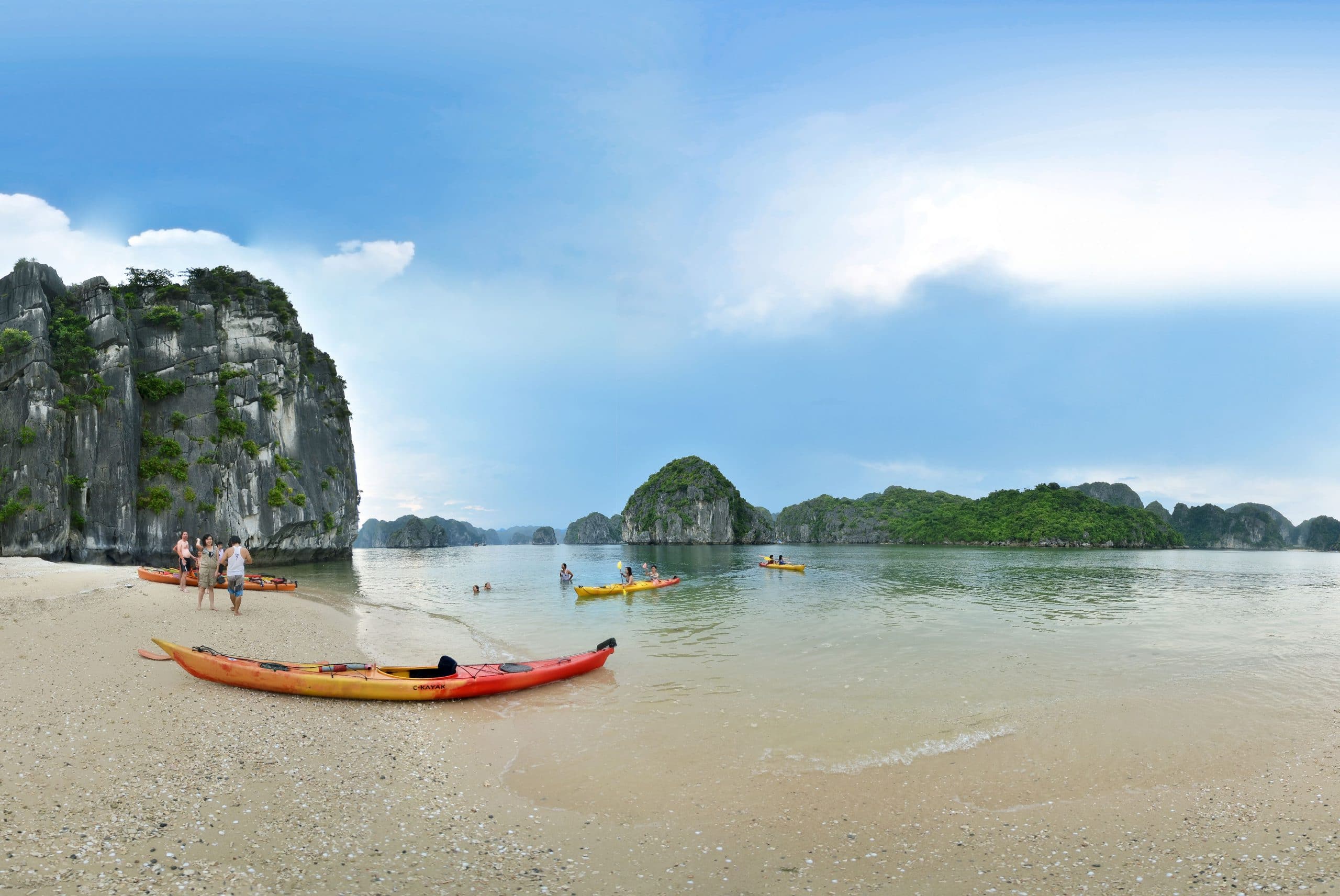 Tuy nhiên, đến với Lan Hạ, du khách nên thuê thuyền kayak để khám phá vịnh cũng như có thể dừng lại ở bất cứ góc khuất nào. Luồn lách qua những khe núi, hang động, thuyền kayak là phương tiện có thể đưa du khách tới sát vách núi hay dừng chân ở những bãi tắm. Vịnh Lan Hạ có tới hơn một trăm bãi biển đẹp nằm men theo các chân núi đá được ví như những “eo biển xanh” với nước trong, sóng lặng và bờ cát thoải thích hợp cho du khách tắm biển. Những vùng biển nước lặng cũng là nơi phù hợp để lặn biển ngắm san hô. Dưới làn nước trong xanh, những ai yêu thích lặn biển có thể ngắm nhìn thỏa thích những bãi san hô đa sắc hay các loại sinh vật dưới đáy biển ở đảo Sến, đảo Cù hay bãi Vạn Hà, Vạn Bội… Các rạn san hô ở đây tuy không lớn nhưng được đánh giá là đẹp nhất và tiêu biểu cho vùng biển Bắc Bộ. Trên hành trình vòng quanh Lan Hạ, du khách thường ghé chơi ở các bãi biển như áng Vẹm, bãi Cát Dứa, hang Tùng Gấu… Ngoài tắm biển, du khách cũng dễ dàng có thể tổ chức nhiều hoạt động trên bãi biển hoặc cắm trại để tận hưởng không khí của biển cả khi màn đêm buông xuống.