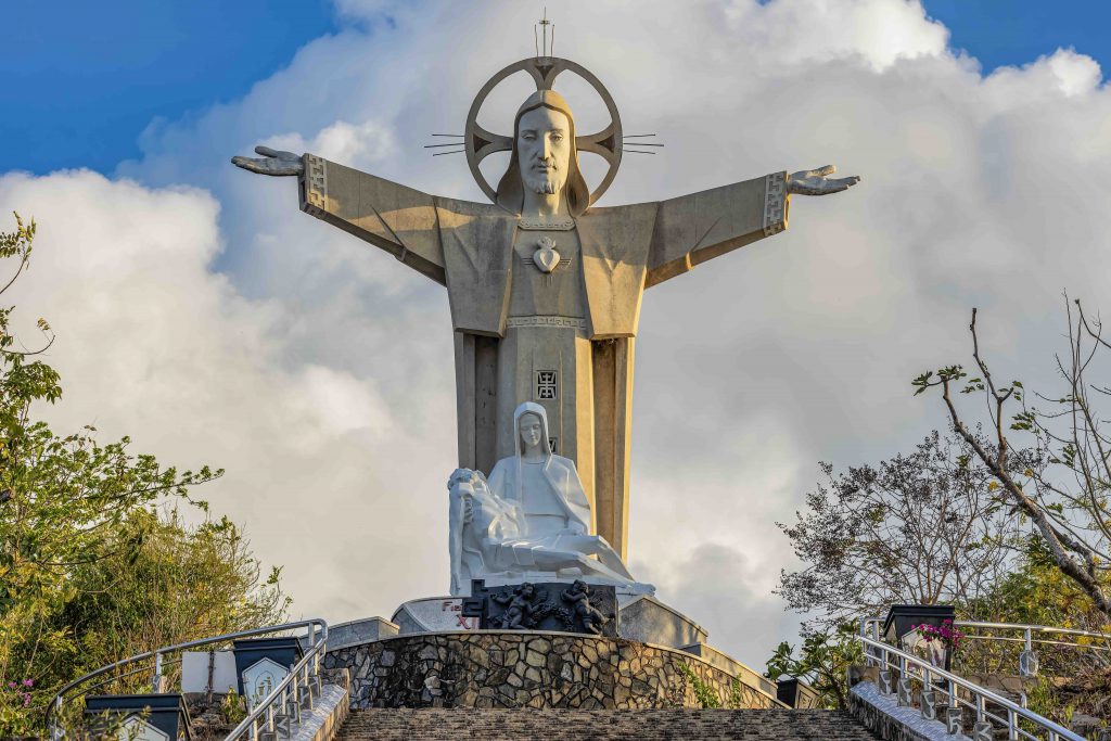 Không cần phải đến Brazil xa xôi để chiêm ngưỡng tượng Chúa cứu thế Cristo Redentor, bạn chỉ cần đặt chân đến Vũng Tàu để ngắm nhìn một phiên bản nhỏ hơn của công trình này – tượng Chúa Kito Vua, hay còn gọi là tượng Chúa dang tay. Tượng được khởi công từ năm 1974 và hoàn thành vào năm 1994, với chiều cao khoảng 32m và chiều dài hai cánh tay dang rộng 18,5m. Không chỉ nổi tiếng với người Công giáo, đỉnh núi Nhỏ nơi có tượng Chúa còn hấp dẫn nhiều người yêu thích chạy bộ và leo núi. Sẽ phải “thử sức” với gần 800 bậc tam cấp để đến chân tượng và tiếp tục leo 133 bậc thang để đi lên hai cánh tay tượng. Sau cuộc “trekking” ngắn, bạn có ngay thành quả trước mắt là khung cảnh rộng mở và bình yên với núi non, bến thuyền và cuộc sống người dân địa phương. Năm 2012, Tượng Chúa dang tay được công nhận là “Tượng Chúa Kito lớn nhất châu Á”.