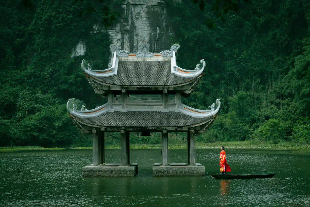 Đi trong hành trình lãng du giữa núi sông Ninh Bình, bạn sẽ bất chợt bắt gặp các góc nhìn tưởng như chỉ có trong phim cổ trang, một tòa thủy đình lẻ loi trên nước, đầm nước rợp tán sen, con đường nhỏ xuyên qua cánh đồng lúa dẫn bước chân tới nghỉ dưới bóng đa già… Lạc bước nơi đây để thấy cuộc đời vốn chẳng thể phí hoài từng phút giây, nhất là khi đồng hành cùng bạn là những bạn trẻ yêu thời trang, yêu nhiếp ảnh hay thi ca nhạc họa. Một ngày vui cùng bạn mẫu trẻ Dylan Khải Nguyễn vốn say mê áo dài truyền thống Việt Nam với nhà thiết kế VUNGOC & SON, một chuyến đi cùng nhiếp ảnh gia Hưng Nguyễn để nhận ra Ninh Bình có lẽ còn đẹp hơn rất nhiều những gì bạn từng nghĩ tới.