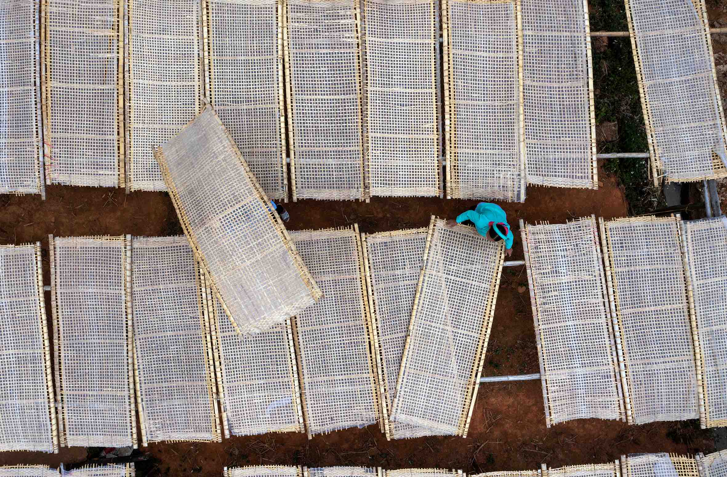 Những miếng bánh tráng to ngay sau đó được đưa lên phên tre hong phơi ngoài trời. Quy trình phơi miến phụ thuộc vào thiên nhiên là chính nên bà con nơi miền cao này quý cái nắng, cái gió trong từng giờ, từng buổi. Đủ nắng, đủ gió, đủ quy trình lật đảo, những miếng bánh tráng được xếp vào máy thái để cho ra những sợi miến dài đều nhau. Cuối cùng là khâu đóng gói thành phẩm vào từng túi 1kg chờ xuất ra thị trường.