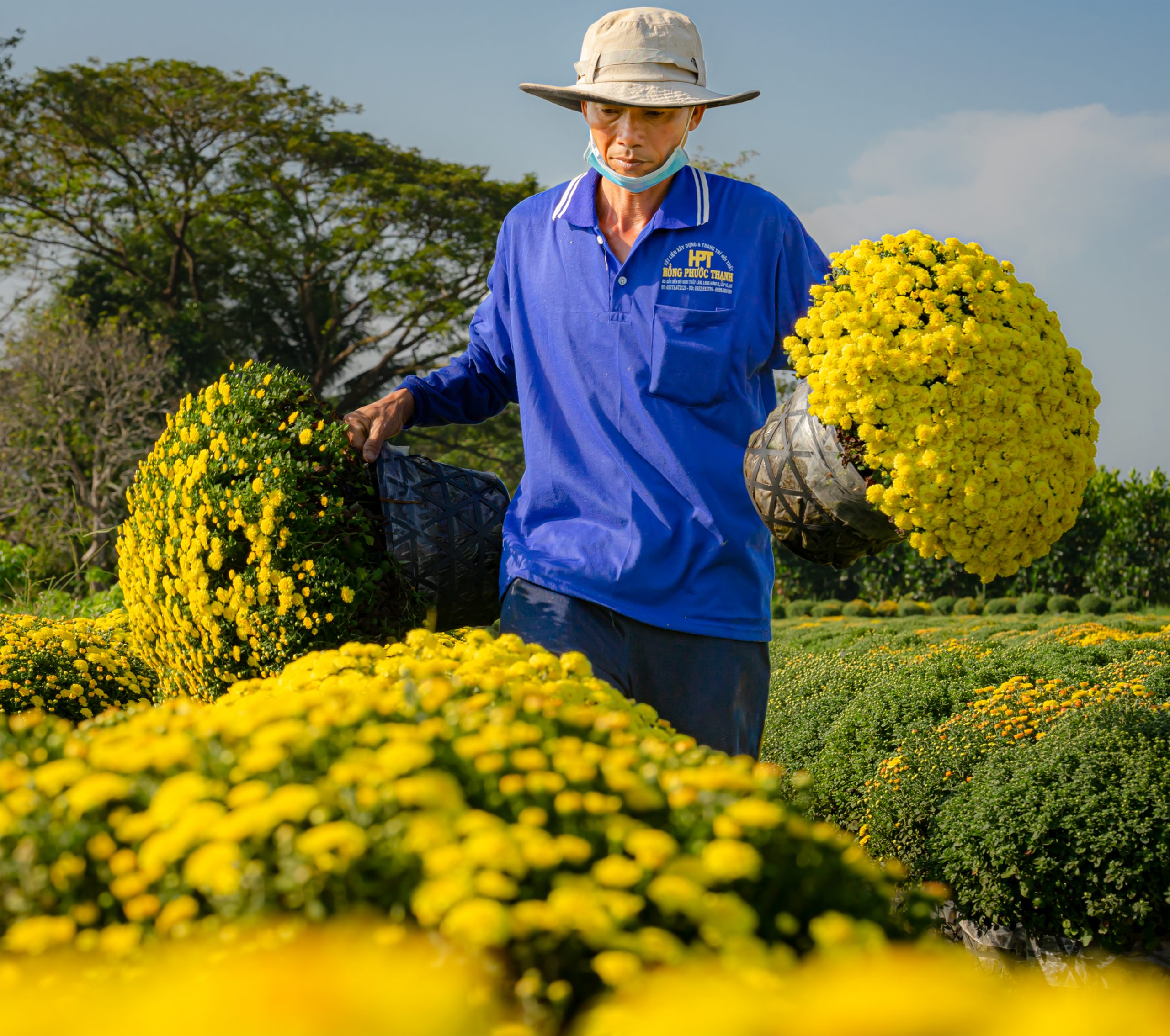 Tìm về “thủ phủ hoa” lớn, đẹp nhất miền Tây, chúng tôi không khỏi bất ngờ trước những ruộng hoa cúc mâm xôi tỏa sắc vàng ươm trong nắng được chăm sóc tỉ mỉ để chuẩn bị đến từng ngôi nhà, từng mảnh vườn chào đón xuân mới.